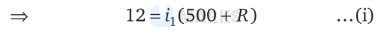 \Rightarrow \quad 12 \times 50=500+R \Rightarrow R=100 \Omega
