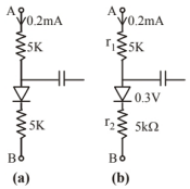 In the circuit shown in figure given below, if the diode forward voltage drop is $0.3 \mathrm{~V}$, the voltage difference between $\mathrm{A}$ and $\mathrm{B}$ is