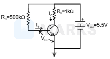 In the circuit shown in figure, the base current is and the collector current is . The voltage () across the base and emitter is