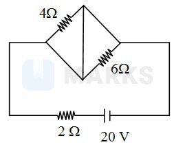 In the circuit shown, the current flowing from the battery is