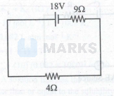 Now, $I=\frac{E}{R+r}=\frac{18}{9+4}=\frac{18}{13}=1.3 ; 1 \mathrm{~A}$