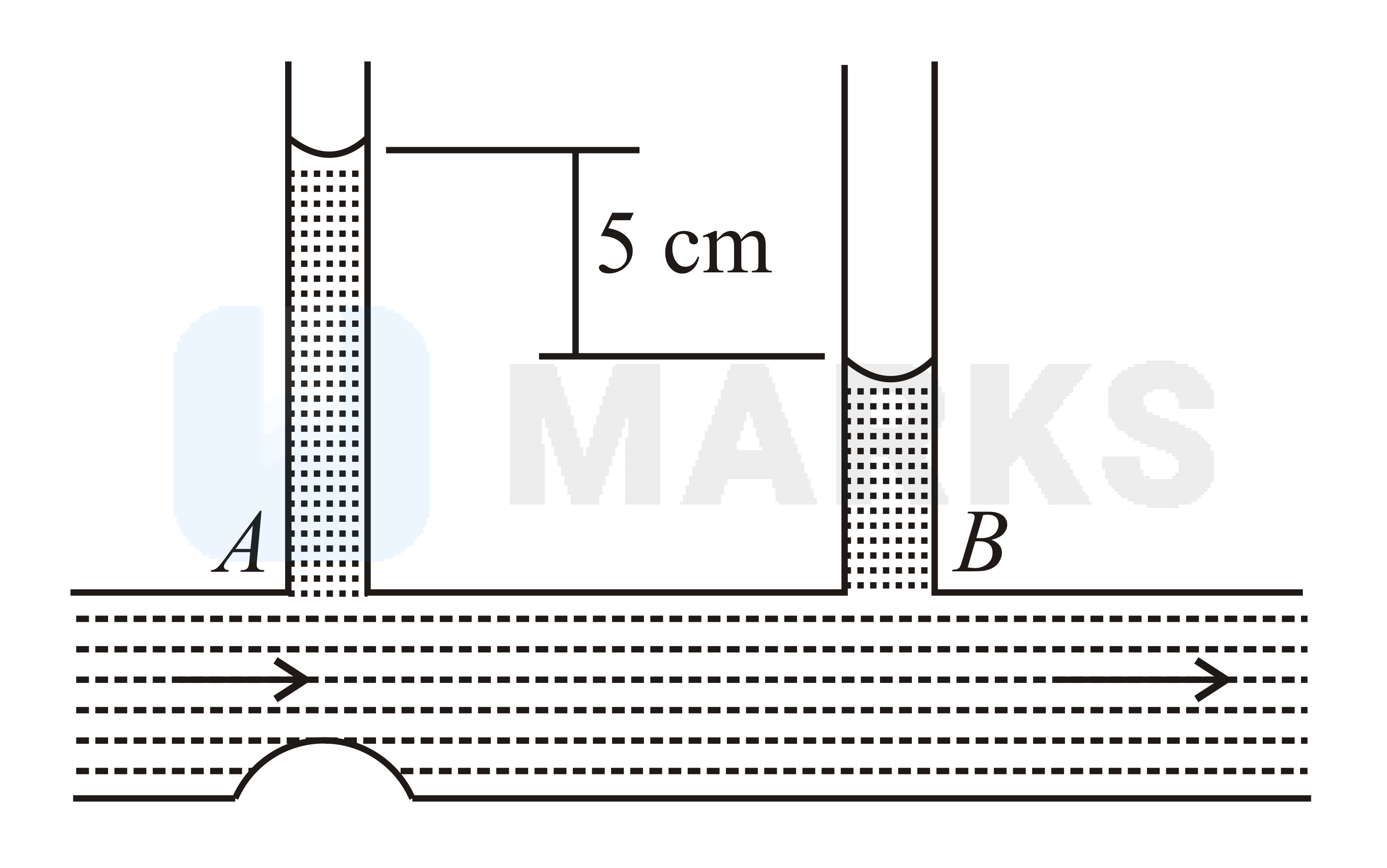 In the diagram shown, the difference in the two tubes of the manometer is , the cross-section of the tube at and is and respectively. The rate at which water flows through the tube is