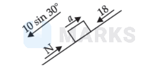 \mathrm{N}-18-10 \sin 30^{\circ} & =m a \\
