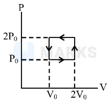 In the figure shown below, an ideal gas is carried around the cyclic process. How much work is done in one cycle if and ?