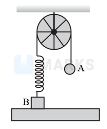 In the figure, the ball is released from rest when the spring is at its natural (unstretched) length. For the block of mass to leave contact with the ground at some stage, the minimum mass of must be