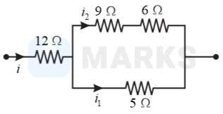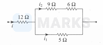 In the following circuit, \( 5 \Omega \) resistor develops \( 45 \mathrm{~J} \mathrm{~s}^{-1} \) due to current flowing through it. The power developed per second across \( 12 \Omega \) resistor is: