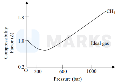 In the following compressibility factor $(\mathrm{Z})$ vs pressure graph at $300 \mathrm{~K}$, the compressibility of $\mathrm{CH}_{4}$ at pressure $ < 200$ bar deviates from ideal behaviour because