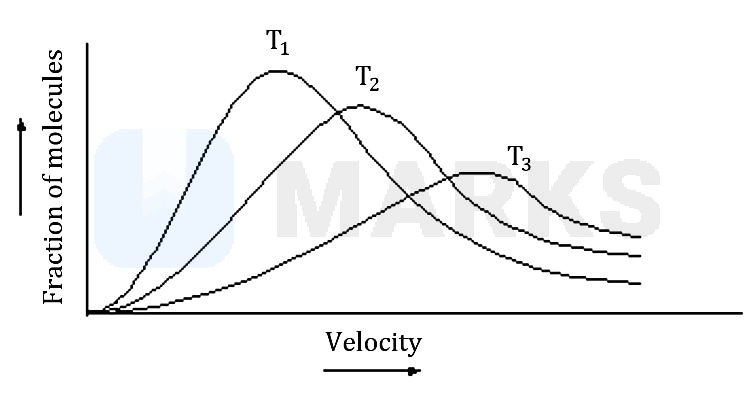 In the following graph of Maxwell-Boltzmann distribution of molecular velocities. Which of the following is the correct order of temperature?