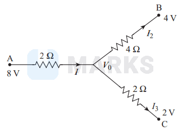 \( \Rightarrow \frac{2\left(8-V_{0}\right)+\left(4-V_{0}\right)+2\left(2-V_{0}\right)}{4}=0 \)
