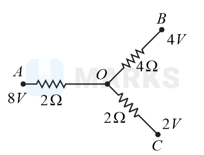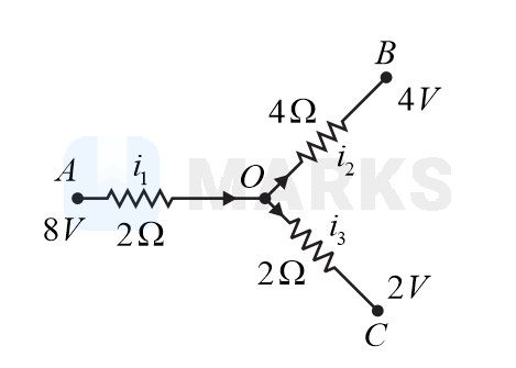 Application of Kirchhoff's first law at junction O gives