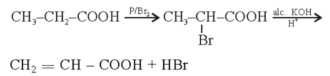 $\mathrm{P}+\mathrm{Br}_2$ is brominating agent that brominates the $\alpha$-position. The product then undergo dehydrohalogenation in the presence of alcoholic potassium hydroxide.