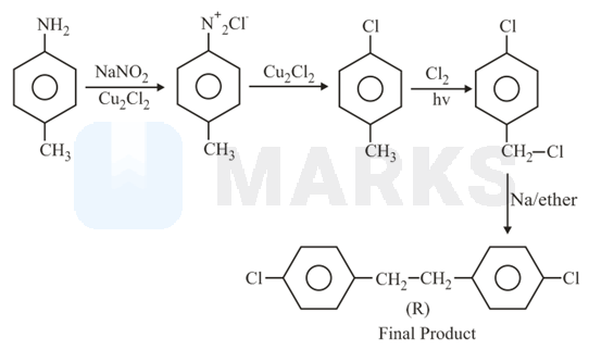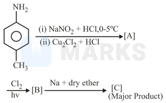 To form product [A] when aromatic amine react with nitrous acid it forms diazonium salt which when treated with copper salts as reagent forms aryl halides and reaction is called as Sendmeyer reaction.