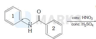 Ring 1 is more active, electrophilic substitution takes place over ring 1. - $\mathrm{NH}-\mathrm{C}-\mathrm{Ph}$ is ortho-para directing, para product is predominating.