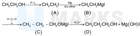 $\therefore$ the compound $\mathrm{D}$ is $n-$propyl alcohol.