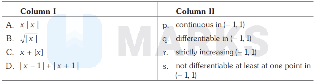 In the following $[x]$ denotes the greatest integer less than or equal to $x$. Match the functions in Column I with the properties Column II.