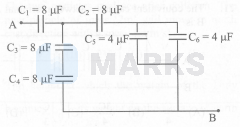 $\mathrm{C}_5$ and $\mathrm{C}_6$ are in parallel and $\mathrm{C}_5=\mathrm{C}_6=4 \mu \mathrm{F}$