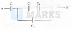 Now, $C_2$ and $C_P$ are in series and their combination in parallel with $\mathrm{C}_5$