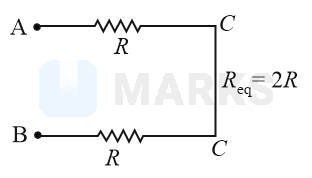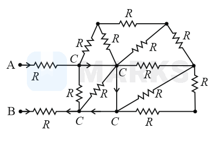 Resistance of ideal wire would be zero, and hence potential will be the same of all point as shown in the figure. So effective path of current is shown in figure,