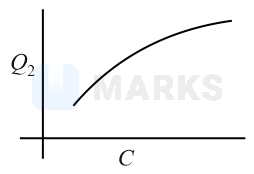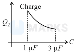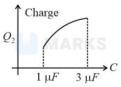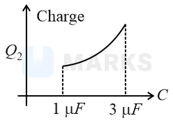 In the given circuit, charge on the capacitor changes as C is varied from to . as a function of 'C' is given properly by: (figures are drawn schematically and are not to scale)