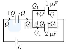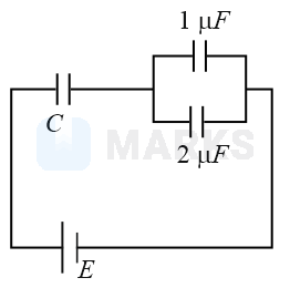. The potential difference across the parallel combination of and is, . So charge on capacitor is,