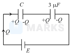The equivalent capacitance of the series combination is, is. So, the total charge supplied by the battery is,