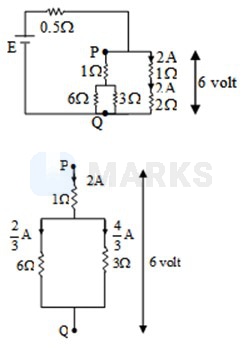 As in the above branch potential across is and equivalent resistance is , therefore current in this branch should be . Therefore voltage across is and hence current in it is .