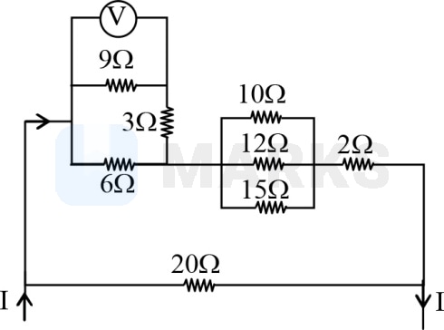 at junction divides into three parts. Since the resistances are in parallel between and , current will distribute in the inverse ratio of resistances.