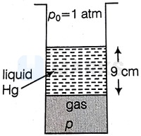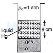 In the given figure, atmospheric pressure atm and mercury column length is . Pressure of the gas enclosed in the tube is