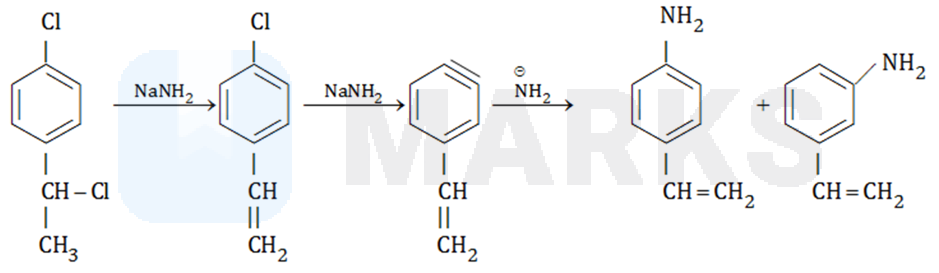 Here X can not be as in presence of , chlorobenzene gives nucleophilic substitution reaction by benzyne mechanism as follows