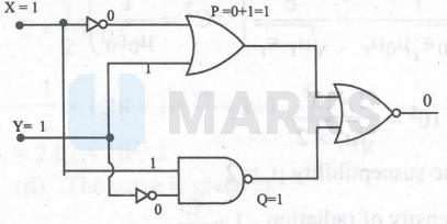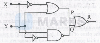 In the logic circuit given below; if $X=1$ and $Y=1$ then the values of $\mathrm{P}, \mathrm{Q}$ and $\mathrm{R}$ are