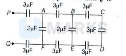 In the network shown in figure, the equivalent capacitance between points $P$ and $Q$ is