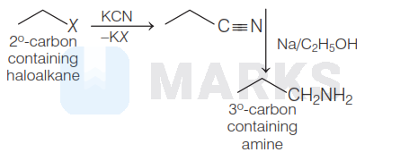 In order to prepare $1^{\circ}$ amine from an alkyl halide with simultaneous addition of one $\mathrm{CH}_2$ group in the carbon chain. The reagent used as a source of nitrogen is KCN. Chemical transformation can be shown as,