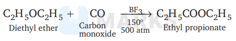 $\mathrm{C}_2 \mathrm{H}_5 \mathrm{OC}_2 \mathrm{H}_5+\mathrm{CO} \underset{150^{\circ} \mathrm{C}, 500 \text { atm pressure }}{\stackrel{\mathrm{BF}_3}{\longrightarrow}} X$