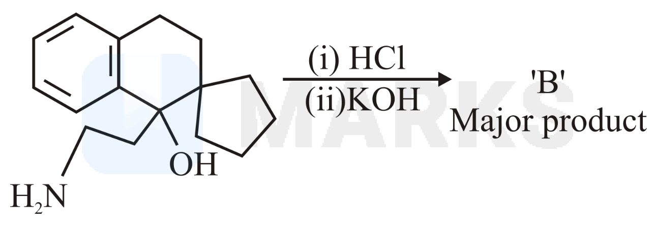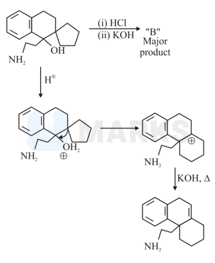 In the first step protonation of alcohol takes place which leads to the formation of carbocation. Ring expansion takes place in the next step. In the given process five membered ring become six membered ring. Now, the carbocation loses proton in the presence of potassium hydroxide to give alkene.