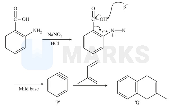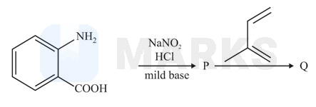 In the reaction shown below, identify the correct combination of te intermediate P and the product Q.