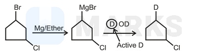 (C - Br) bond is weaker than (C - Cl) bond. Grignard's reagent is formed more predominantly with (C - Br).