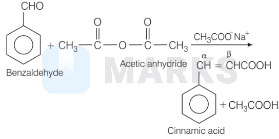 The given reaction is an example of Perkin condensation. In this, reaction aromatic aldehydes react with acid anhydride of an aliphatic acid in presence of sodium salt of same acid to form $\alpha, \beta$-unsaturated acid. The steps involved in the process are as follows