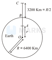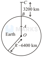 In the reported figure of earth, the value of acceleration due to gravity is same at point and but it is smaller than that of its value at point (surface of the earth). The value of will be . The value of is