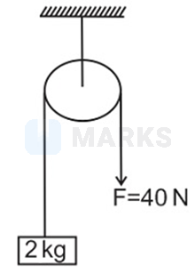 In the system shown in the figure, the block is pulled by applying a force of on the other end of the string. If the kinetic energy of the block increases by in a given interval of time then work done by tension on the block is