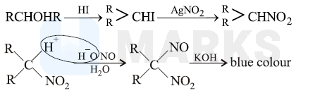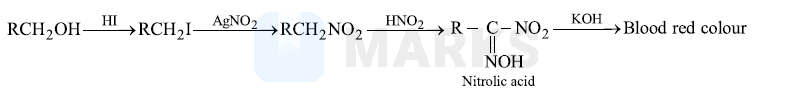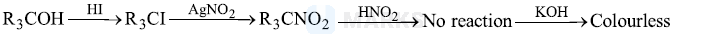 In the Victor-Meyer's test, the colour given by $1^{\circ}, 2^{\circ}$ and $3^{\circ}$ alcohols are respectively:
