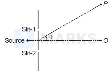 In the YDSE arrangement shown here, the intensity on the screen due to slit-2 is four times that of slit-1. If resultant intensity at the position of central maxima is , the resultant intensity at point P, where the phase difference between two waves coming from two slits is is