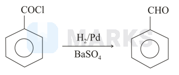 In which of the following reactions, benzaldehyde is formed from benzoyl chloride and hydrogen in the presence of ?