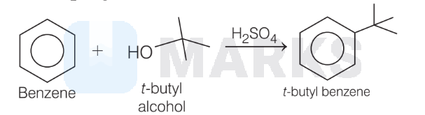 3. Benzene $+t$-butyl alcohol $\stackrel{\mathrm{H}_2 \mathrm{SO}_4}{\longrightarrow}$