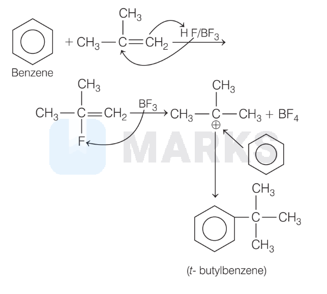 2. Benzene $+\left(\mathrm{CH}_3\right)_2 \mathrm{C}=\mathrm{CH}_2 \stackrel{\mathrm{BF}_3}{\stackrel{\mathrm{HF}}{\longrightarrow}}$
