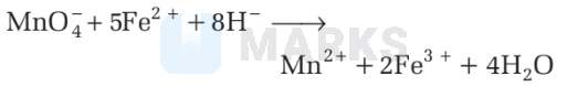 $\mathrm{MnO}_4^{-}+5 \mathrm{Fe}^{2+}+8 \mathrm{H}^{+} \longrightarrow$