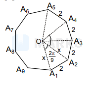 Now $\cos \frac{8 \pi}{9}=\frac{x^{2}+x^{2}-\left(A_{1} A_{5}\right)^{2}}{2 x^{2}}$ (in $\left.\Delta A_{1} O A_{5}\right)$