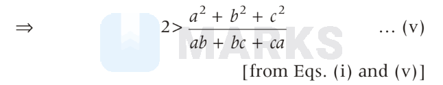 \Rightarrow \quad & \frac{a^2+b^2+c^2}{a b+b c+c a} < 2