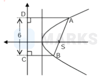 Let is the focal chord of a parabola and and be the foot of the perpendiculars from and on its directrix respectively. If units and area of trapezium is square units, then the length (in units) of the chord is