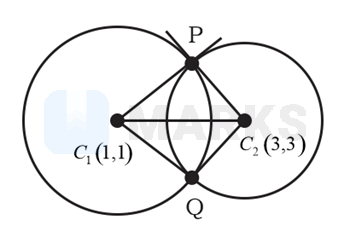 Let and be the centres of the circles and respectively. If and are the points of intersection of these circles, then the area (in sq. units) of the quadrilateral is :