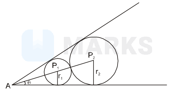 $\operatorname{Sin} \theta=\frac{1}{\sqrt{3}}=\frac{r_{1}}{\mathrm{AP}_{1}}=\frac{r_{2}}{\mathrm{AP}_{2}}$